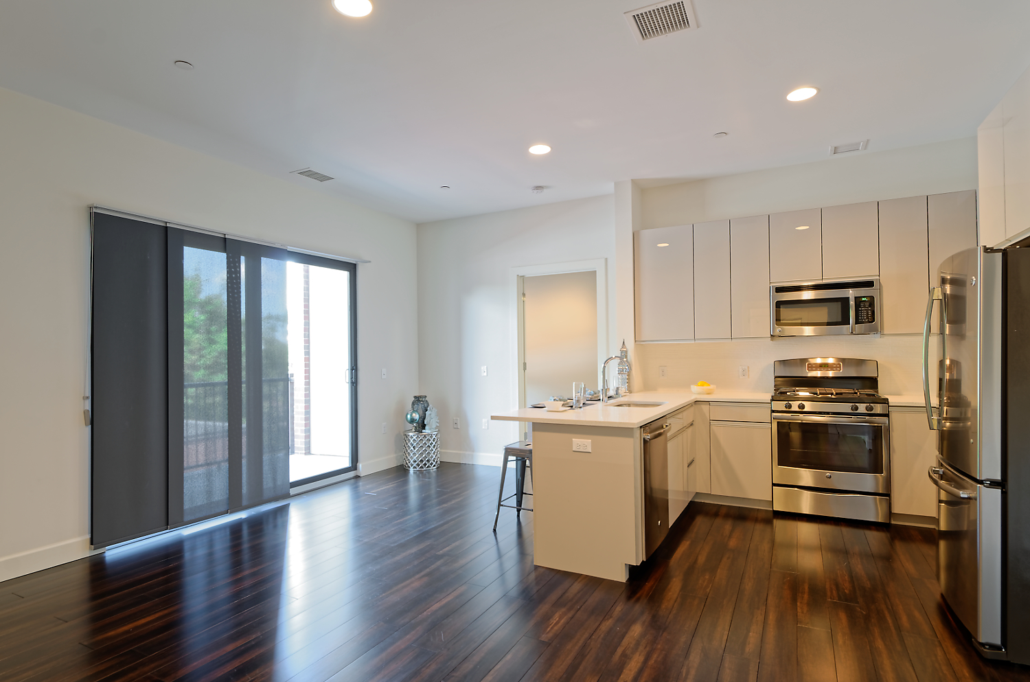 Open, airy, one bedroom apartment with gourmet open kitchen featuring stainless steel appliances and breakfast bar. Hardwood floors throughout entry, kitchen, living and dining area. Gorgeous bathroom with Porcelenosa fixtures. Washer/dryer in apartment. Oversized windows provide plenty of natural light. Private balcony off living area. Assigned, indoor garage parking space included in monthly rental amount.